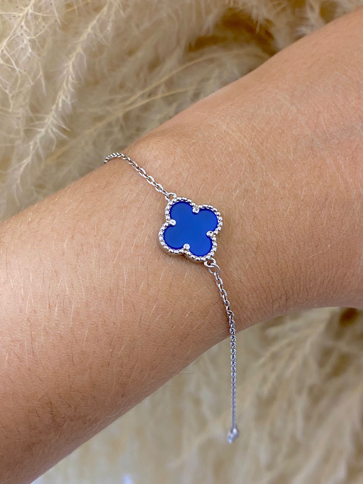 Pulsera trebol rodinada azul