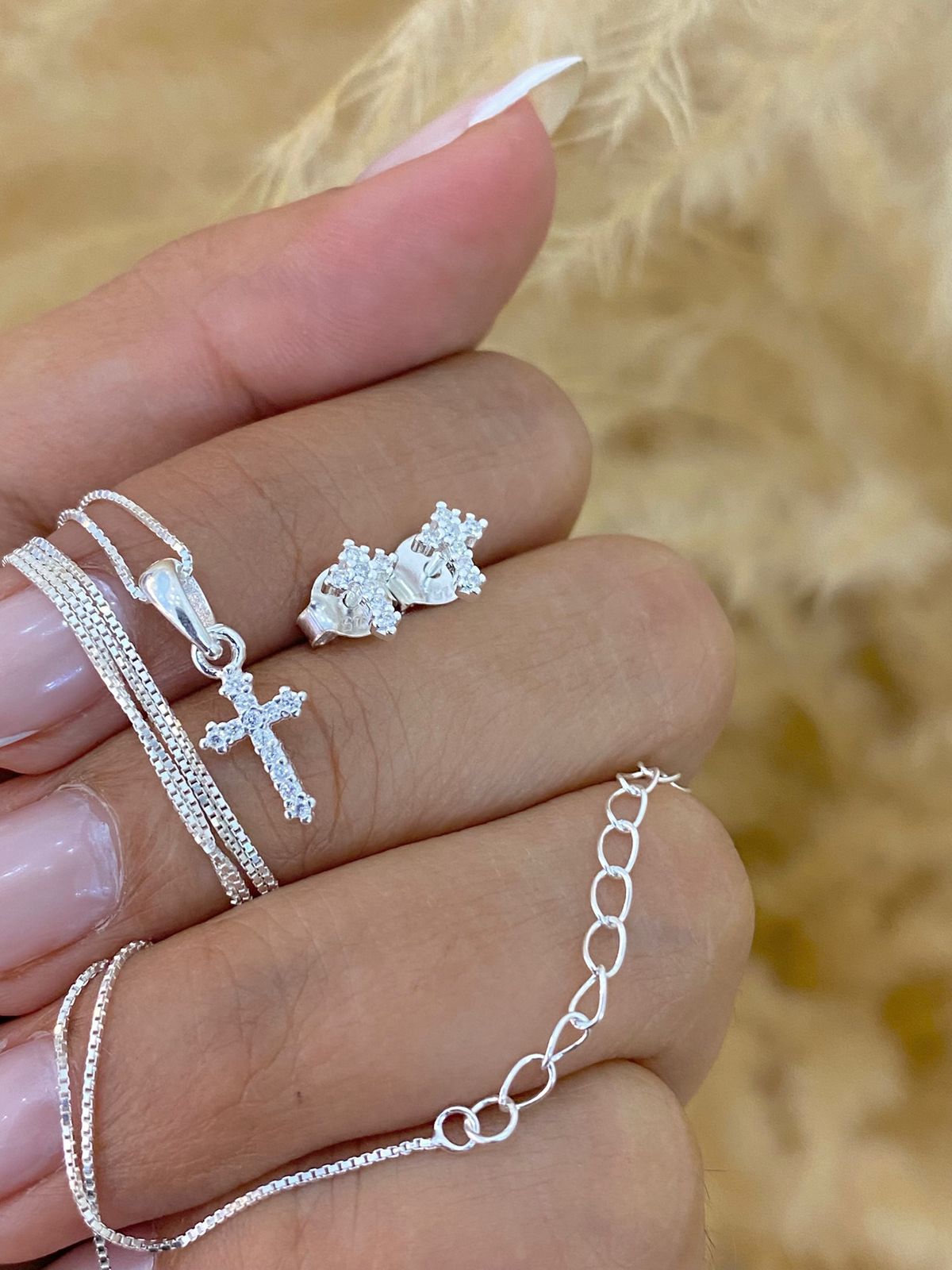 !Este set cruz cristal circon 47cm con ext puede ser tuyo por $ 100.000!
